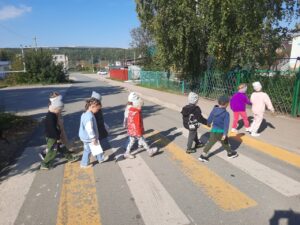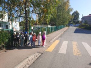 С целью предупреждения дорожно-транспортного травматизма, с воспитанниками средней группы детского сада “Березка” была организована экскурсия к пешеходному переходу. В ходе экскурсии дети закрепили знания о правилах дорожного движения, перехода дороги на нерегулируемом пешеходном переходе, а также правила поведения рядом с проезжей частью. Кроме того, обратили внимание на дорожный знак «Пешеходный переход», который информирует пешеходов и водителей быть внимательными и ответственными. Дети заметили, что, перебегая проезжую часть в неустановленном месте, пешеходы нарушают правила дорожного движения, рискуя своей жизньюи подвергая опасности других участников движения. Обсудив поведение нарушителей, ребята обещали переходить дорогу, только в установленном месте – по пешеходному переходу. Экскурсия получилась познавательной и увлекательной.